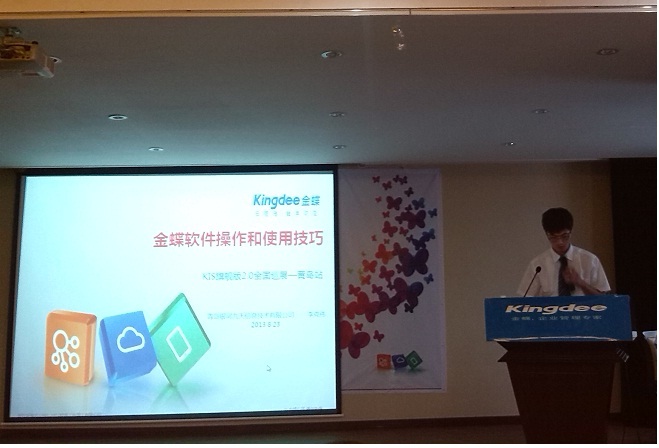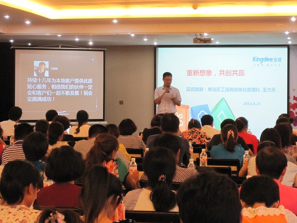 本次活动得到了黄岛区工信局、黄岛区国税局以及金蝶软件青岛分公司的大力支持。活动开始,黄岛区工信局信息化管理科王方元科长进行了致辞,王科长分析了当前的经济形势及小微企业目前的处境,并介绍了黄岛区政府鼓励企业进行信息化建设的相关优惠政策。